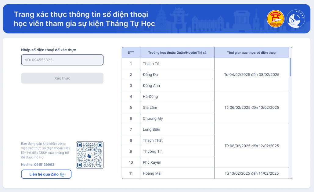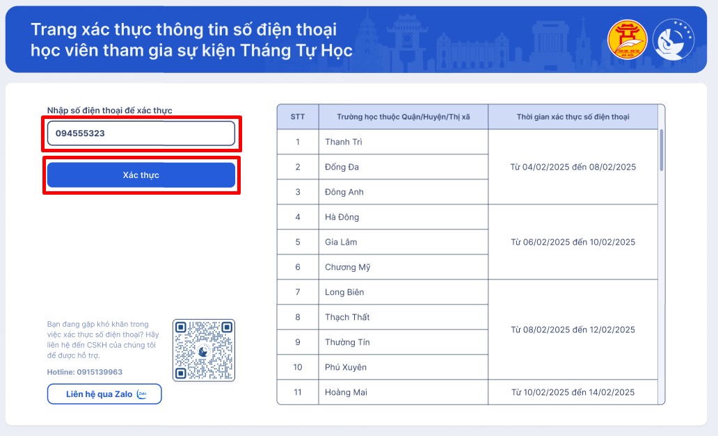 • Bước 3: Hệ thống kiểm tra thông tin số điện thoại học viên gửi yêu cầu xác thực.